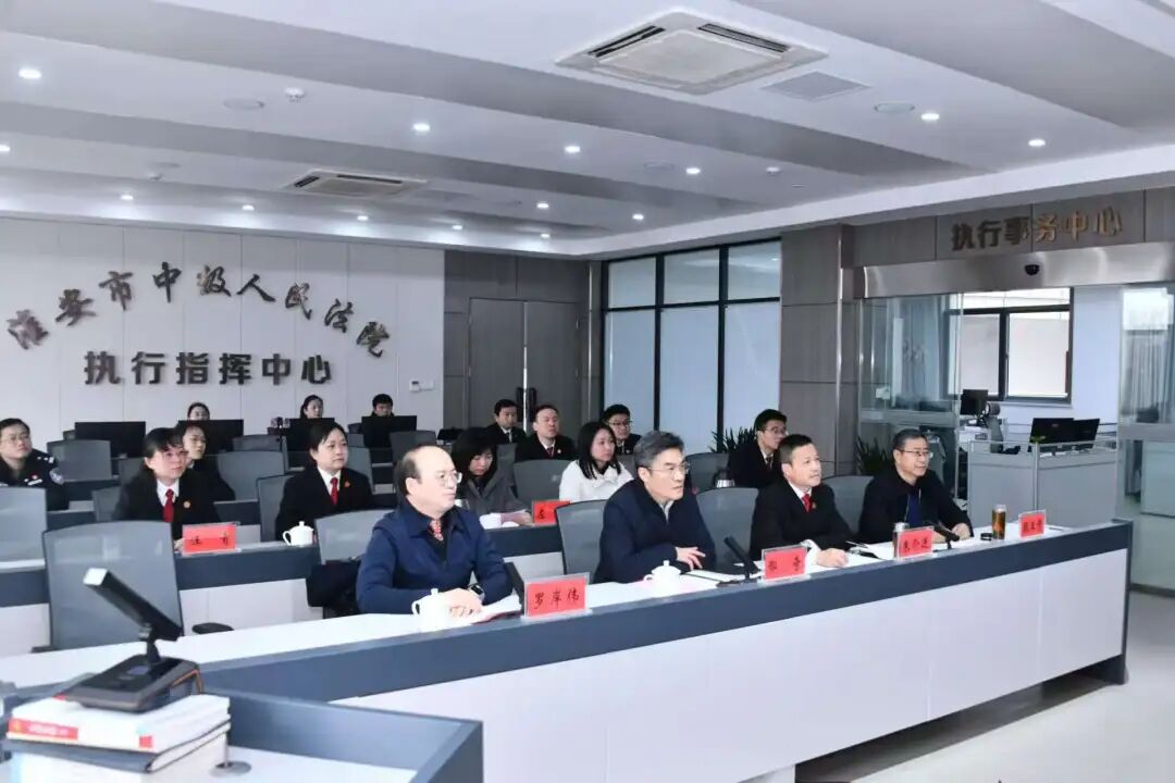 12月24日上午,市法院黨組書記、院長郁奇于市法院執行指揮中心連線各基層法院執行現場并指揮調度。5名省人大代表、政協委員以及市檢察院相關部門負責人現場監督見證執行行動。