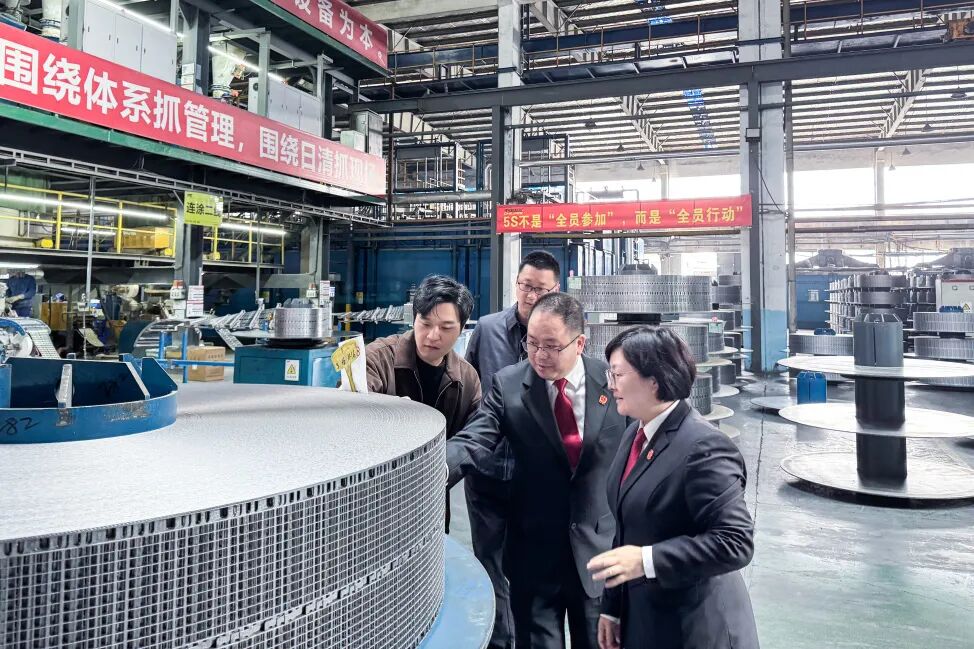 盱眙法院法官走進(jìn)某能源公司生產(chǎn)研發(fā)一線,了解企業(yè)在電池技術(shù)創(chuàng)新、生產(chǎn)工藝升級中的司法需求,為綠色能源產(chǎn)業(yè)的高質(zhì)量發(fā)展提供精準(zhǔn)法治保障。