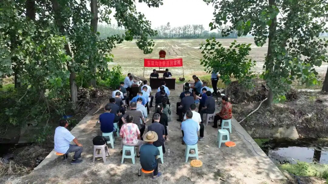 “只有深入田間地頭,才能貼近群眾,實現矛盾糾紛精準高效化解。”為了確保不誤農時,東雙溝法庭法官嚴銀第一時間前往現場勘查。隨后,嚴銀邀請雙方當事人來到東雙溝法庭“鄉村解紛中心”,聯合郭貝村村干部郭奇共同開展調解。