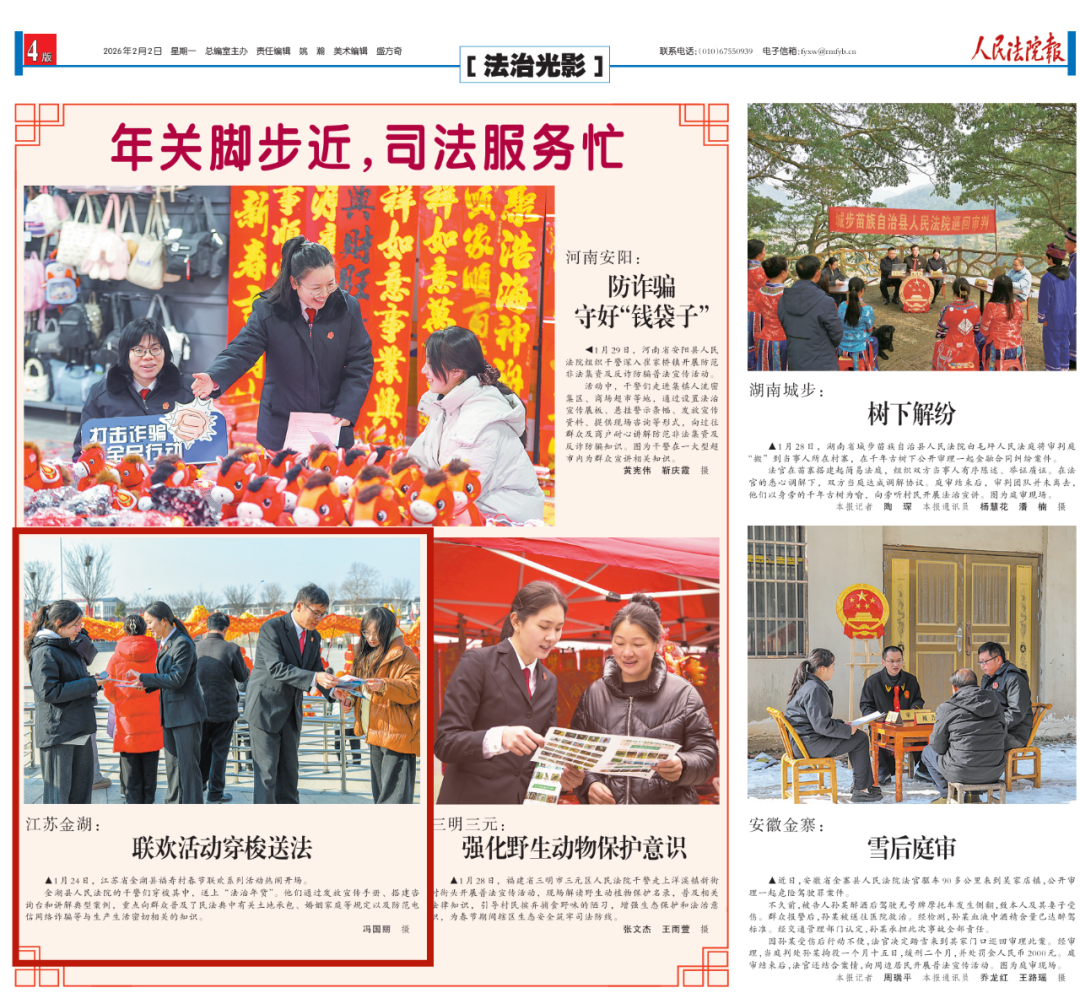 2月2日,《人民法院報》4版刊發報道金湖法院新春送法下鄉活動