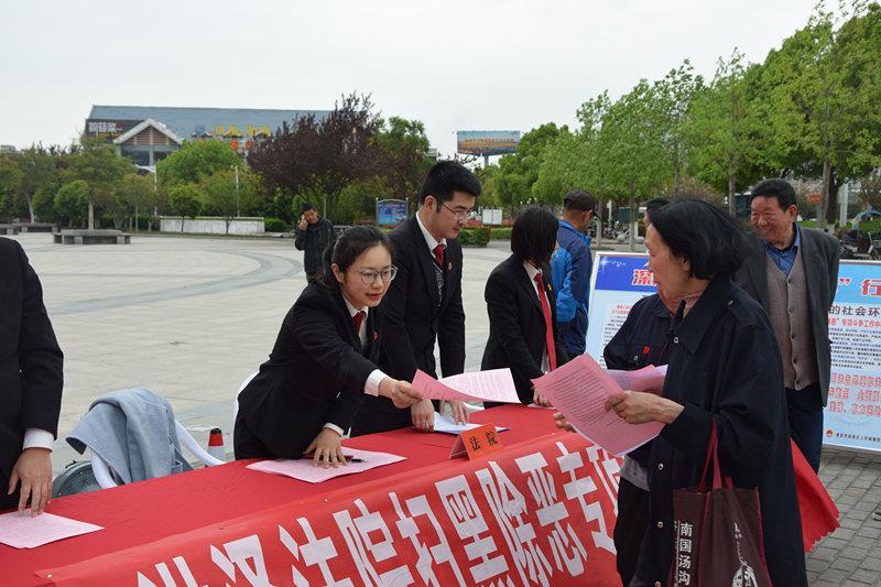 4月12日上午,洪澤法院刑事審判庭全體干警走上街頭廣場積極開展“掃黑除惡專項斗爭”法治宣傳活動。